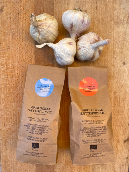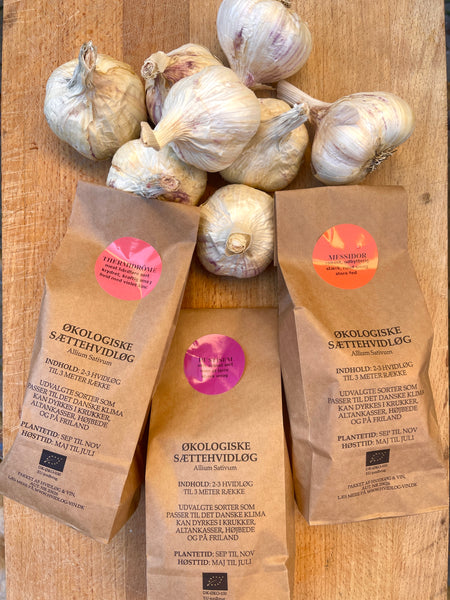 Vi har udvalgt en række sorter af hvidløg som er gode i det danske klima. Sortimentet af sættehvidløg overholder alle myndighedskrav til plante materiale og er alle økologisk certificerede. Du kan sagtens dyrke dine egne hvidløg i haven eller i dit drivhus, selv i krukker eller altankasser kan man få succes med at plante hvidløg.